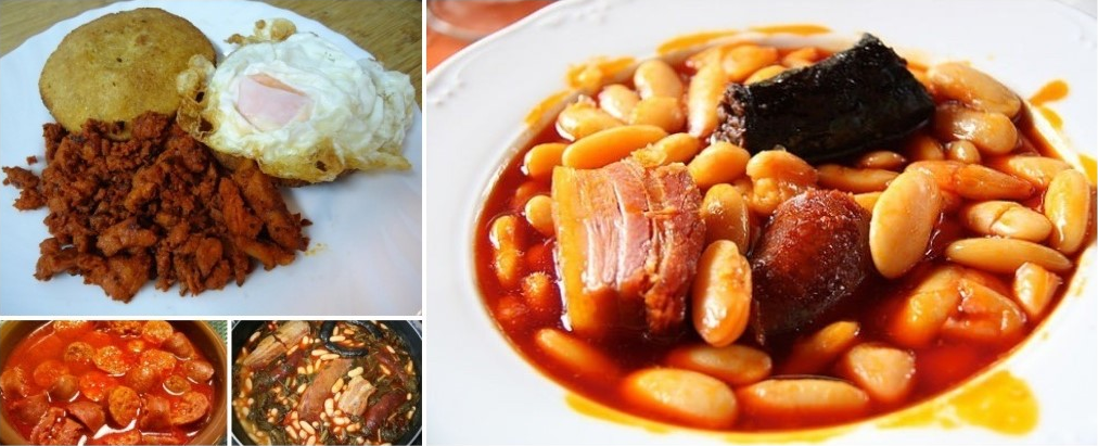 - La Fabada : Plato tipico por excelencia. Compuesto por Fabes y productos provenientes de la matanza como la morcilla, el chorizo y el lacón.